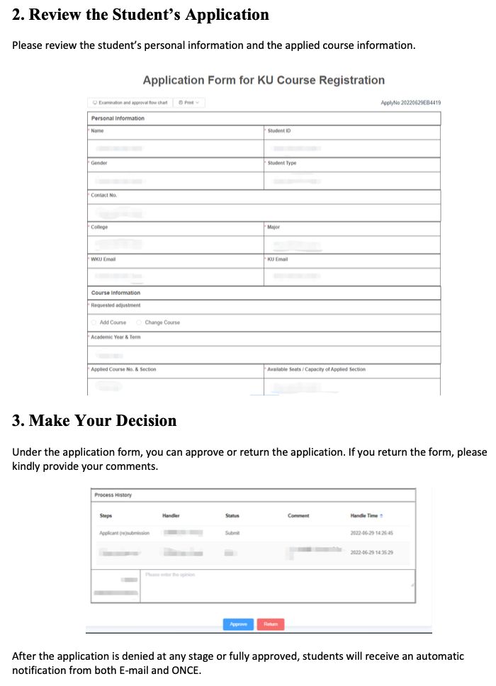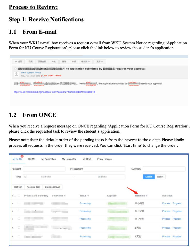 A3: We also send a notification email to students regarding the launch of the online workflow. If students come to you, please ask them to use ONCE - https://once.wku.edu.cn.