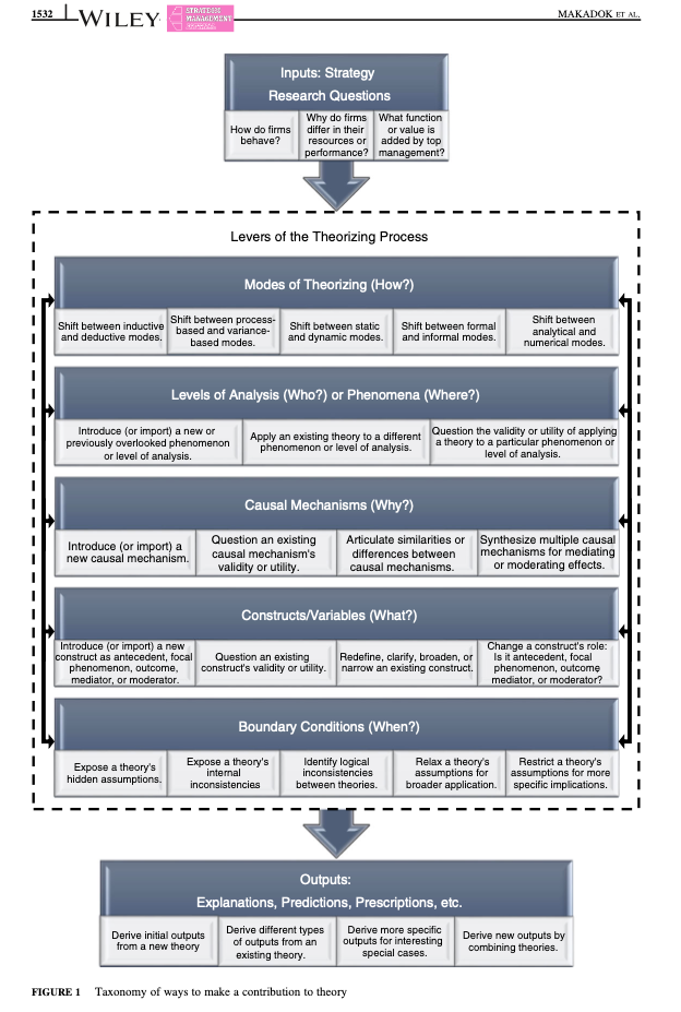 (source: Makadok, R., Burton, R., & Barney, J. 2018. A practical guide for making theory contributions in strategic management. Strategic Management Journal, 39: 1530–1545.)