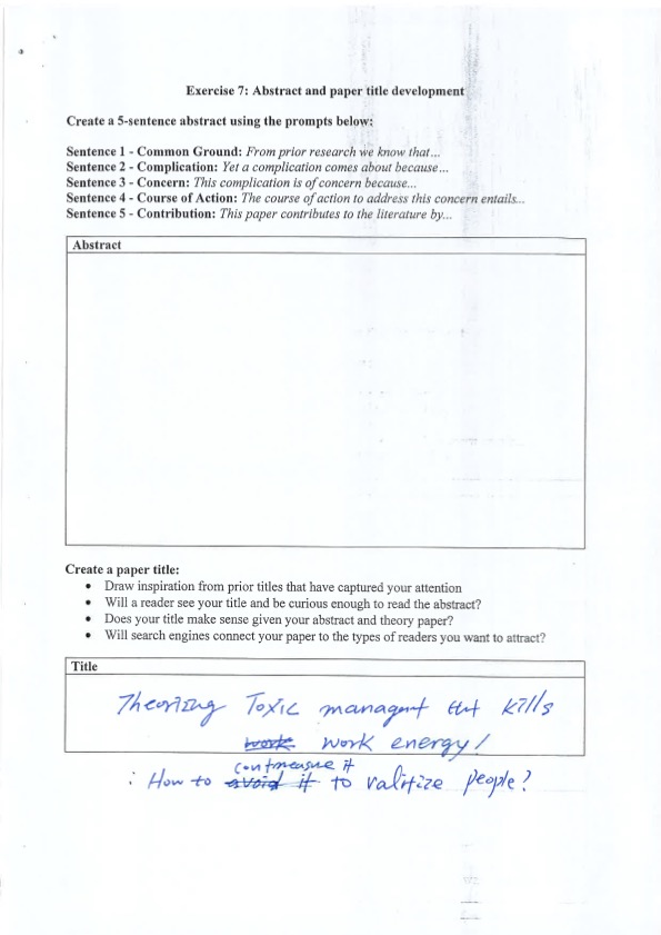 Following these guidelines, a draft of "Toxic Management" was scratched.