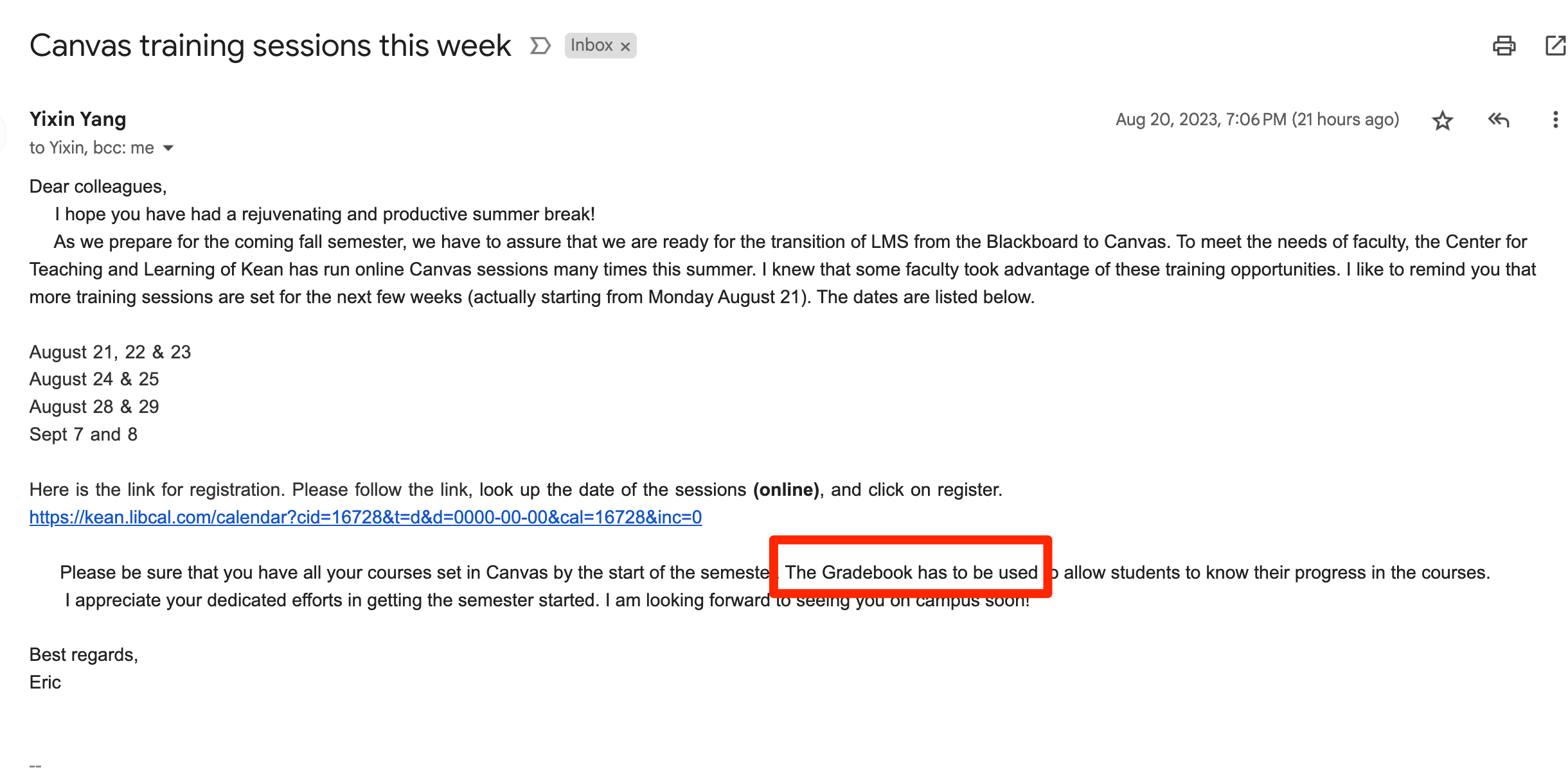 Kean CANVAS Faculty Training (Aug. 21 ~ 26, 2023)