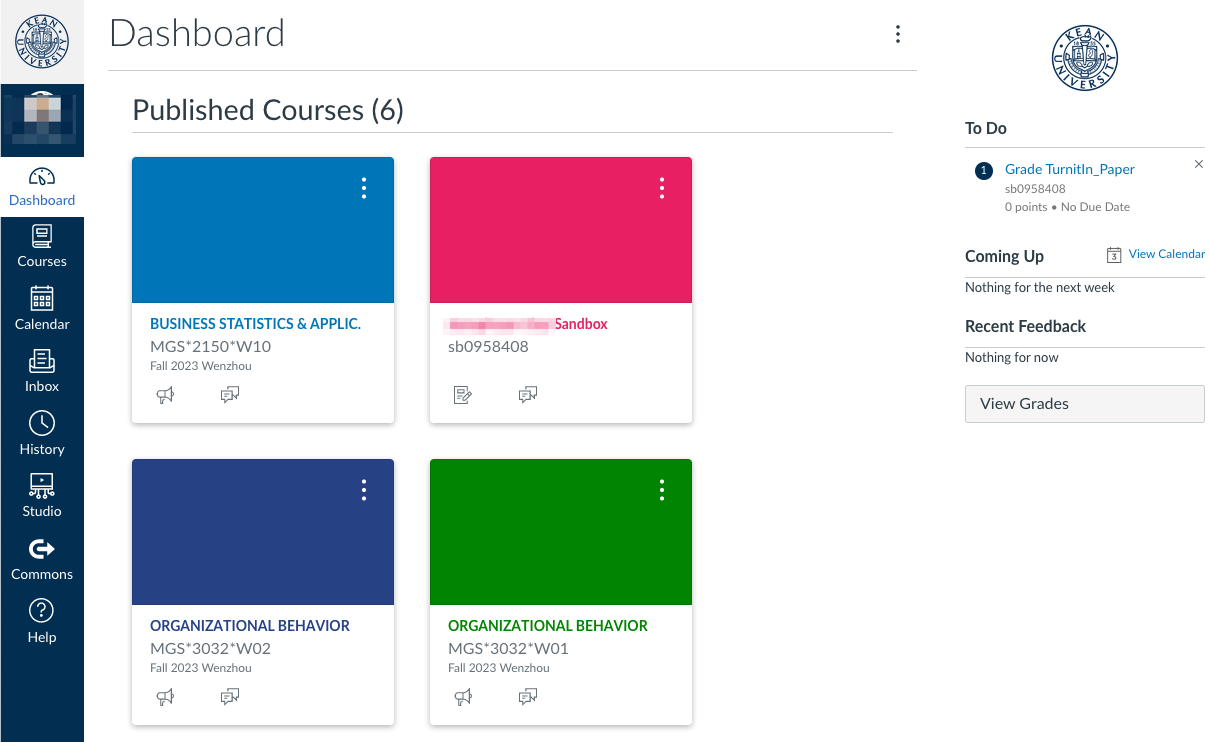 1. Login with your Kean ID/PWD and OKTA security to CANVAS Dashboard