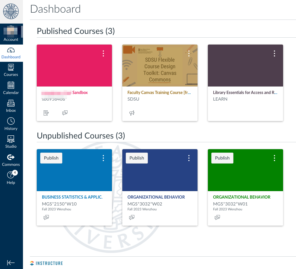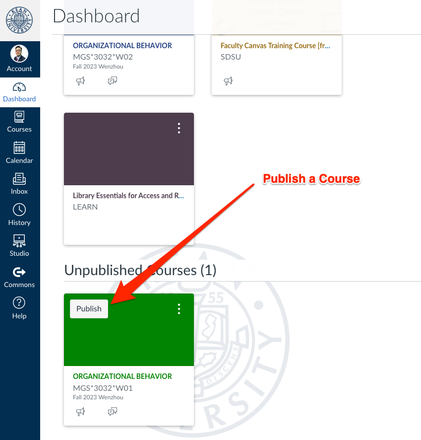 5. Once you setup the CANVAS for a course, please "Publish" it to make it visible to Students!