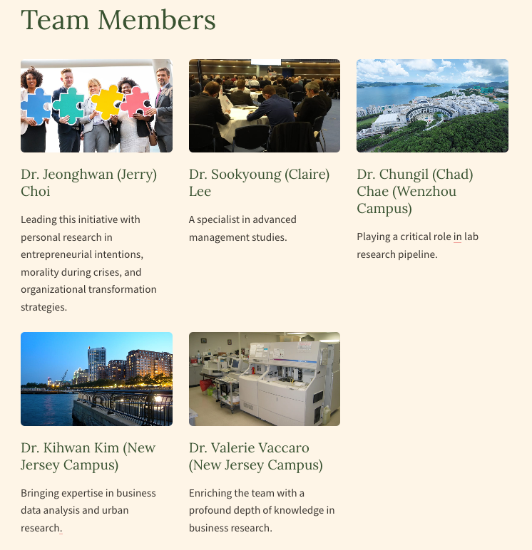 - Dr. Chungil (Chad) Chae (Wenzhou Campus): Dr. Chae plays a critical role at the Wenzhou campus, significantly contributing to the lab research pipeline.