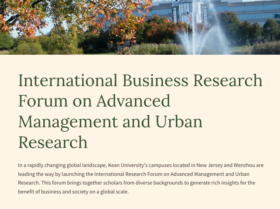 International Business Research Forum on Advanced Management and Urban-Research (Kean University, New Jersey and Wenzhou)