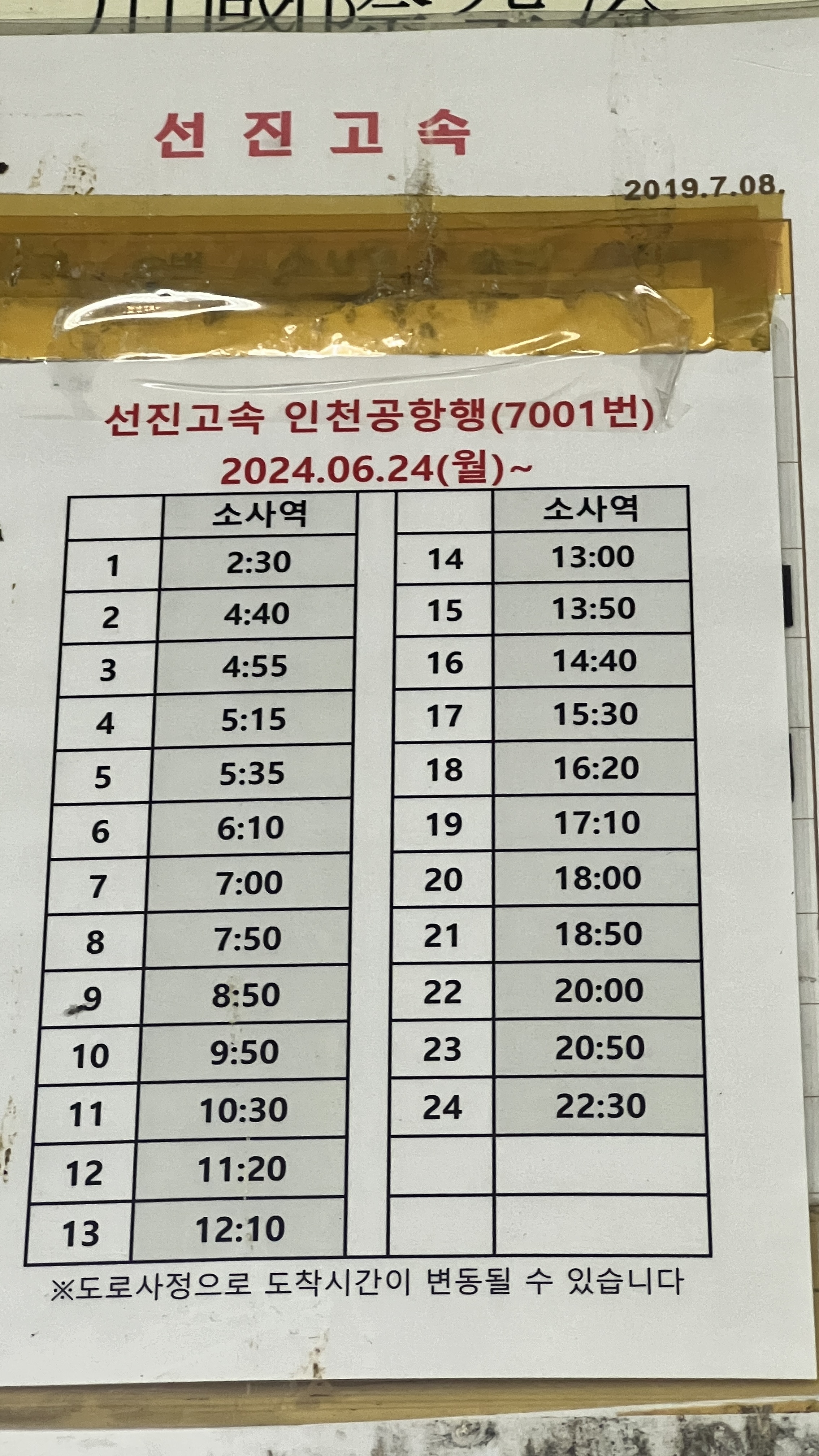 소사역 -> 인천공항 7001번 버스 시간표(2024. 06. 24 ~ )