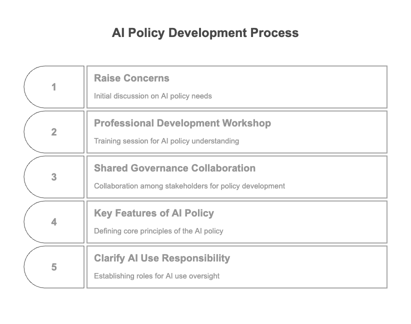 Use AI to foster critical thinking and reflection—not as a threat, but as a co-creator in student learning. - Develop a Campus-Wide AI Policy Tailored by School (e.g., Graduate Programs)