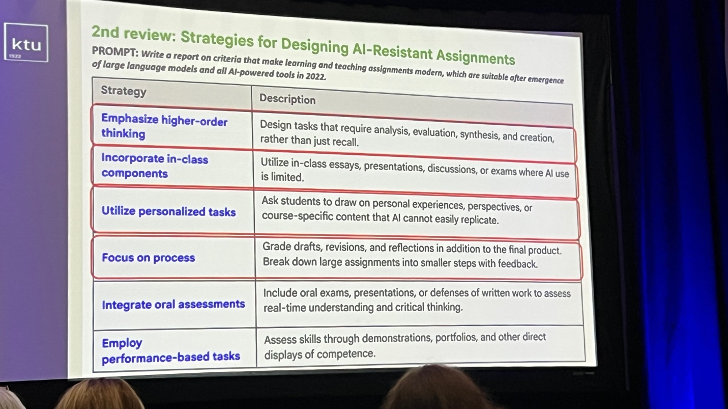 This session examined how generative AI is challenging traditional academic assignments and reshaping how student learning is assessed. Dr. Evelina Jaleniauskiene from Kaunas University of Technology presented a compelling analysis of evolving instructional design and emphasized the need for universities to move beyond one-dimensional assignments like essays or reports.