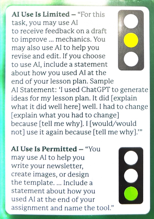 - Set clear expectations for how AI can be used in the course.